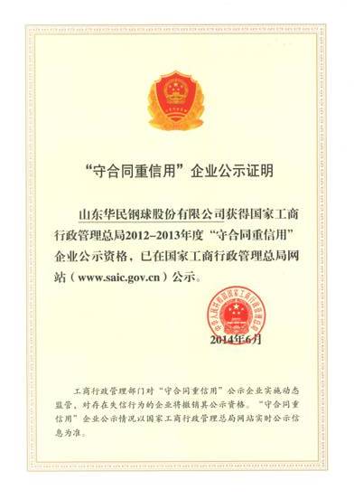 國家守合同重信用企業(yè)證書
